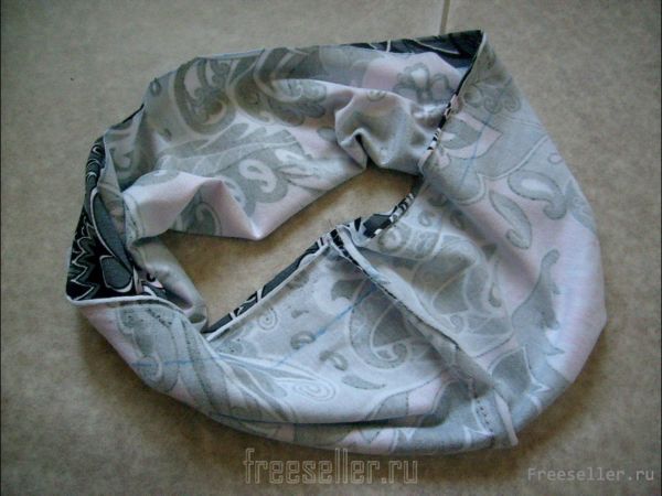 4. Воротник «хомут» готовНаша ткань не слишком лёгкая, зато очень гладкая — держать форму она не будет. Поэтому лучше всего просто дать воротнику лечь естественным образом. А надев водолазку, его можно будет расправить.