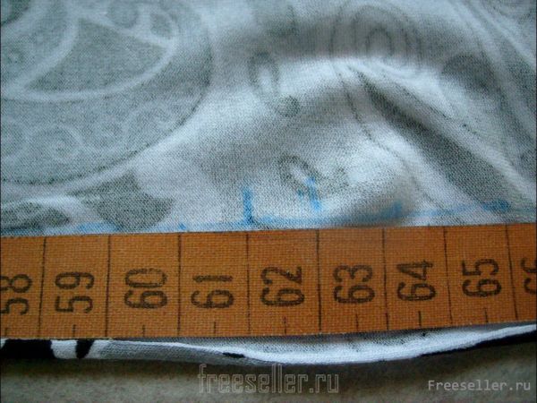 Вычерчиваем на ткани прямоугольник размера 60 см на 20 см. Добавляем припуски на швы.